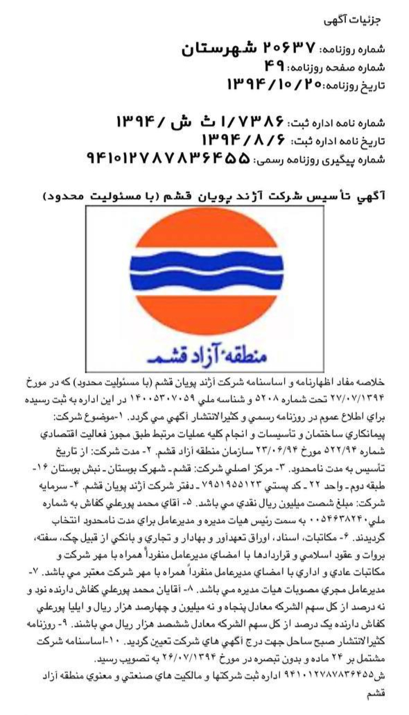 شرکت آژند پویان قشم